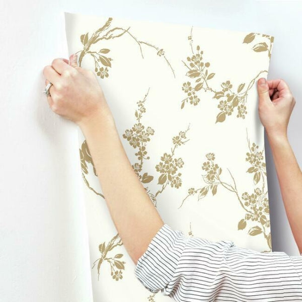 This Imperial Blossoms Branch Wallpaper measures approximately 27 inches wide by 27 feet long, covering About 60. 8 square feet per roll.