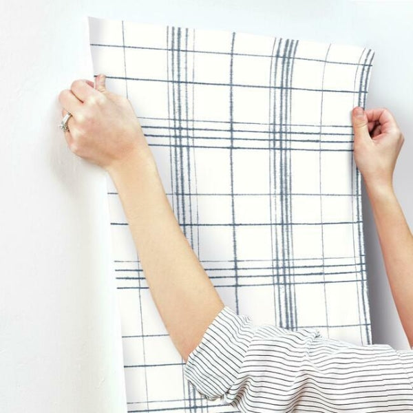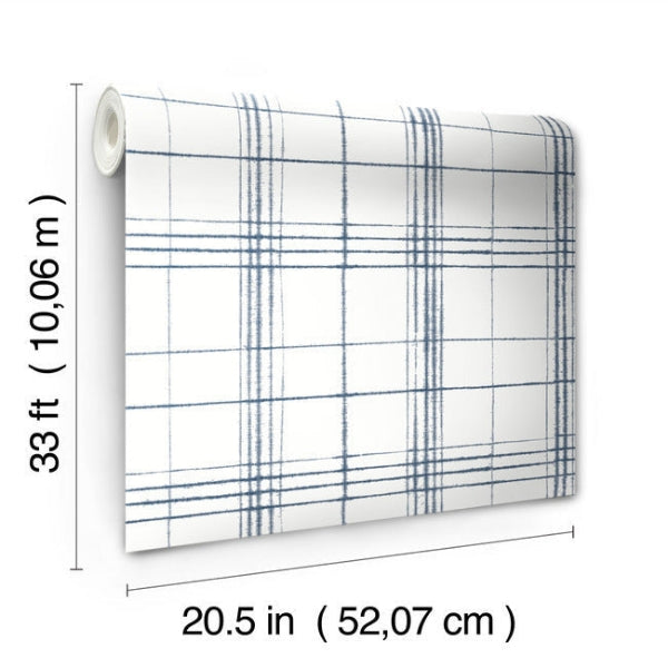 Fay Navy,White Farmhouse Plaid Bohemian Blue Red Wallpaper | Jeffrey Stevens