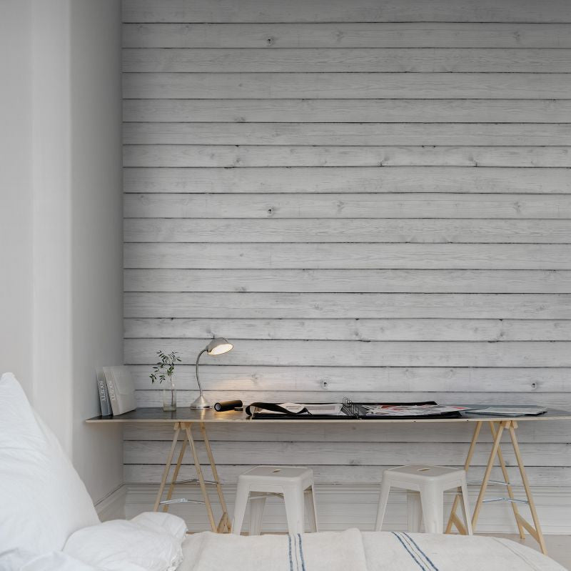 Horizontal Boards, white Wallpaper | Rebel Walls