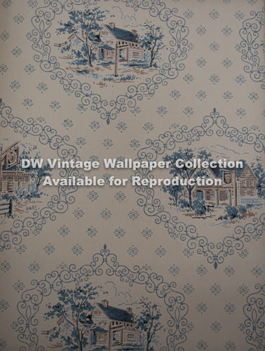 This vintage-inspired wallcovering evokes a sense of nostalgia with its charming toile pattern and delicate color palette. The scenic design adds a touch of elegance, making it suitable for creating a sophisticated and inviting atmosphere in commercial spaces.
