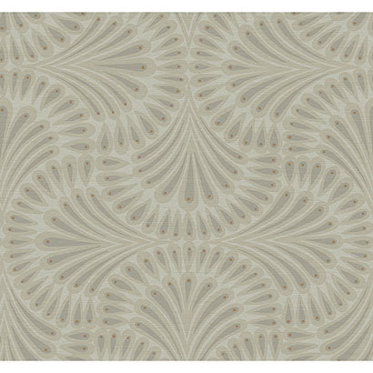 Dedicated to upbeat design concepts, Antonina Vella Designer Wallpaper from Wallcoverings represents luxurious style with a modern edge; this is art for the wall..A graceful curvilinear design, Cabaret Wallpaper is punctuated with metallic dots and features stylized peacock feather fans reminiscent of a 1920s dancer's costume.