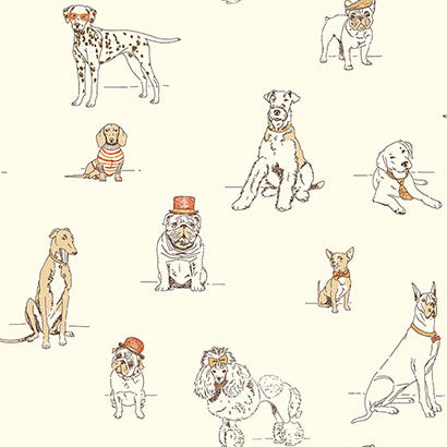 The Dilby Dog's Life Wallpaper by Jeffrey Stevens features charming dog illustrations in a whimsical pattern, blending playful sophistication with classic appeal. Ideal for pet lovers seeking unique, stylish wall decor. #homeinteriors #wallstyle #designerwalls