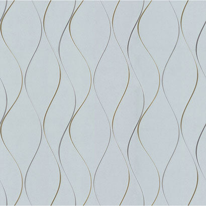 Pattern Wavy Stripe combines metallic shine and sound waves together in a distinctive mix of classic meets modern style. This Wavy Stripe Wallpaper measures approximately 21 inches wide by 33 feet long, covering About 57.