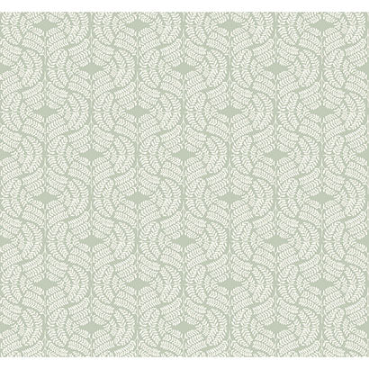 Elegant, artisanal detailing adds a classic touch to contemporary style for heritage modern interiors..Gracefully curved, leafy sprigs form large square designs in raised ink on contrasting solid color. This is Fern Tile Wallpaper.