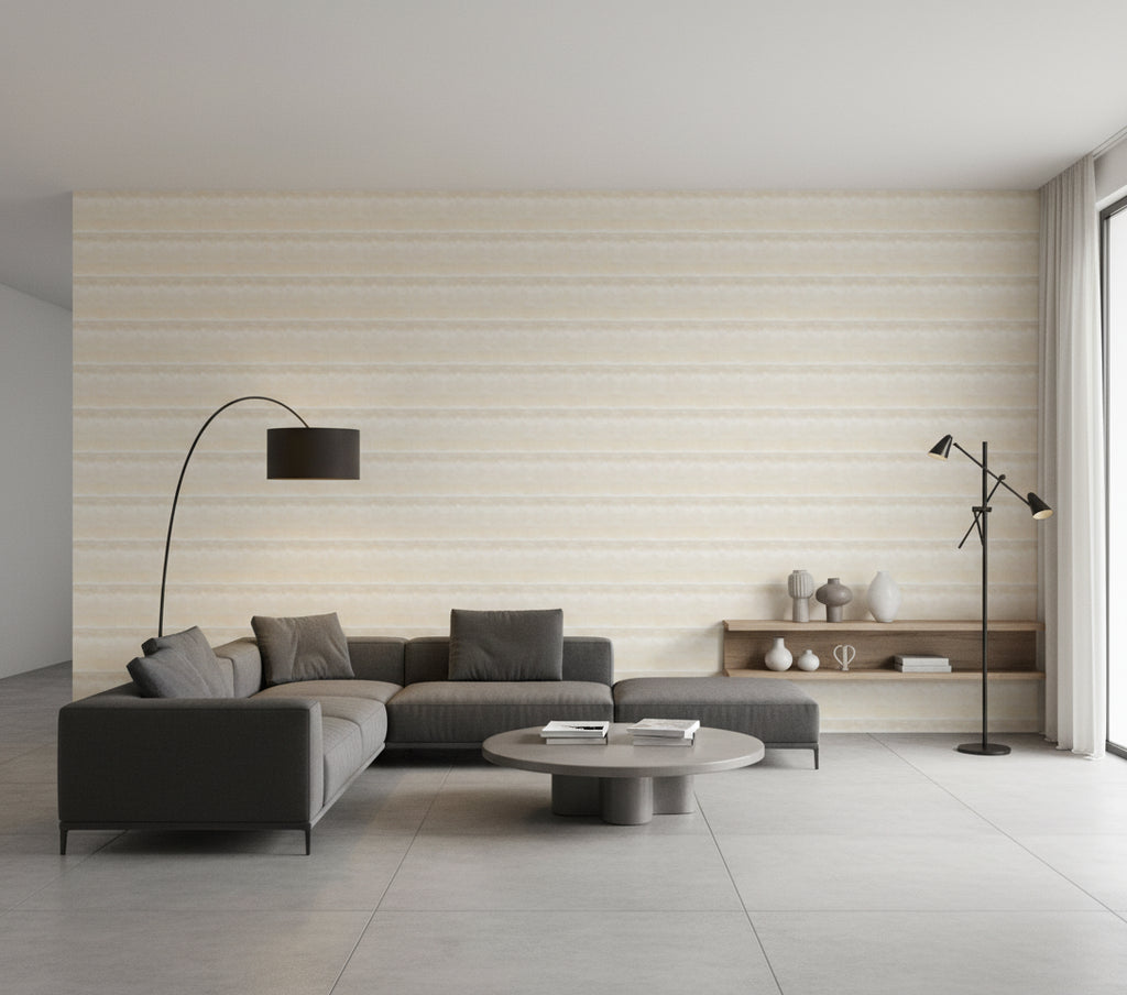 This Breeza wallcovering in Color 02 offers a soft, ethereal aesthetic with its blended beige and cream tones. The abstract pattern creates a subtle, calming effect, making it suitable for various interior spaces seeking a touch of understated elegance.