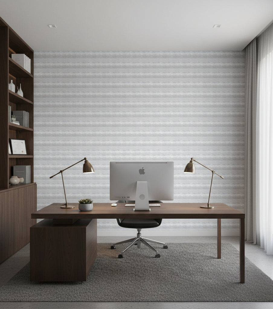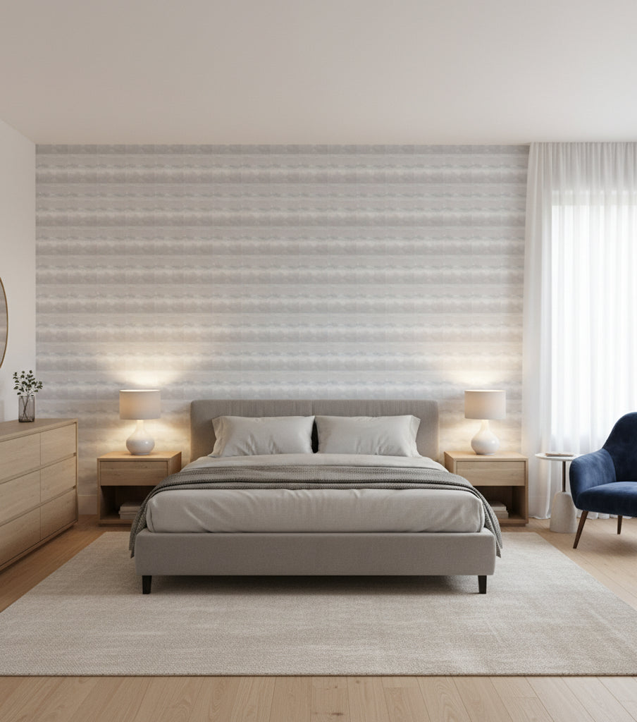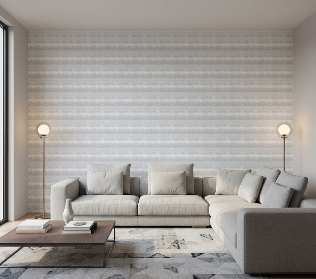 This Breeza wallcovering in Color 03 offers a serene and calming aesthetic with its soft, muted tones and abstract design. The blend of gray, white, and light blue creates a tranquil atmosphere, making it ideal for spaces where relaxation is key.