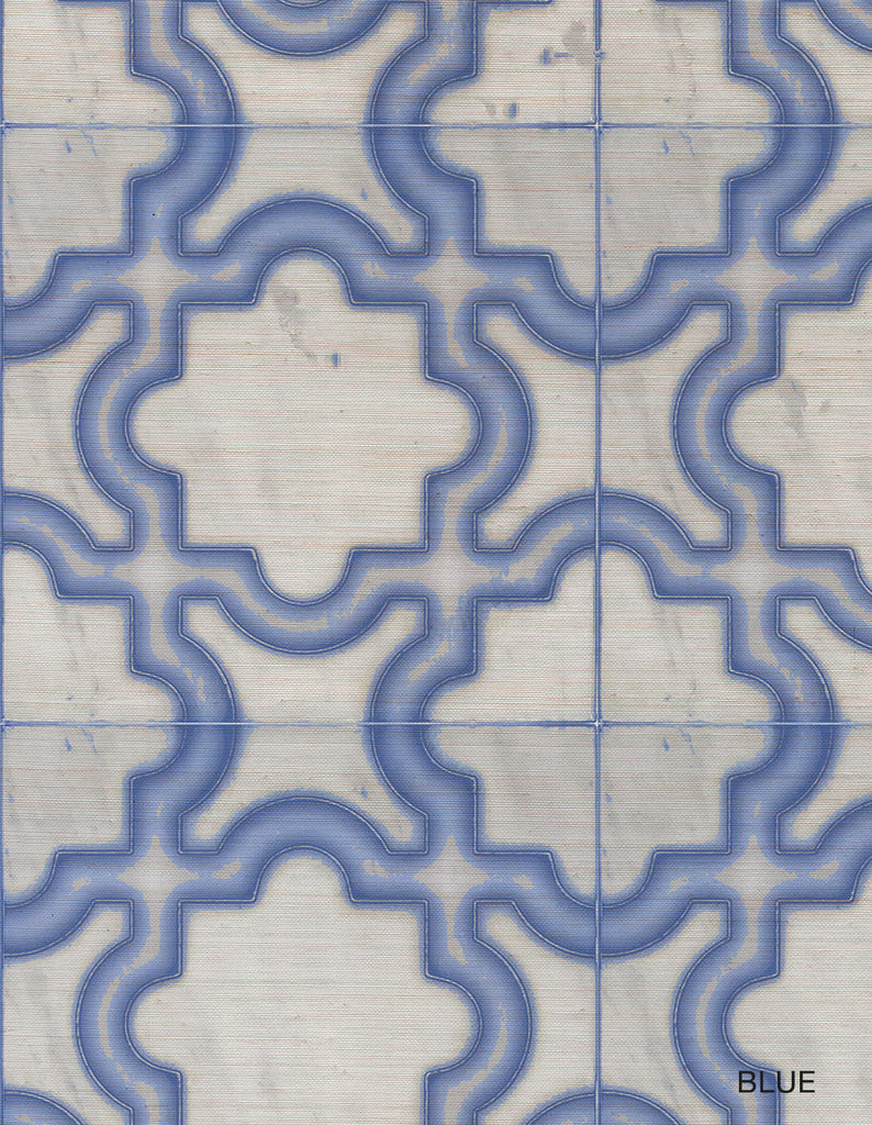 A design that was influenced by Spanish tiles bridges time with its slightly blurred effect and hand crafted appearance. Easy and casual colors on silver sisal offer a pattern with a wide range of applications. This pattern is crafted by combining hand-painted finishing with geometric design. Sold in standard lengths from 1 to 4 yards. Pattern is 35" wide after trim by installer.