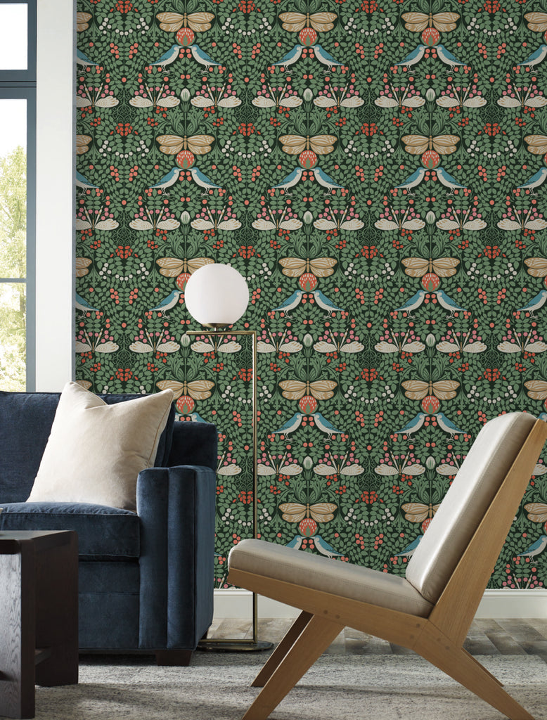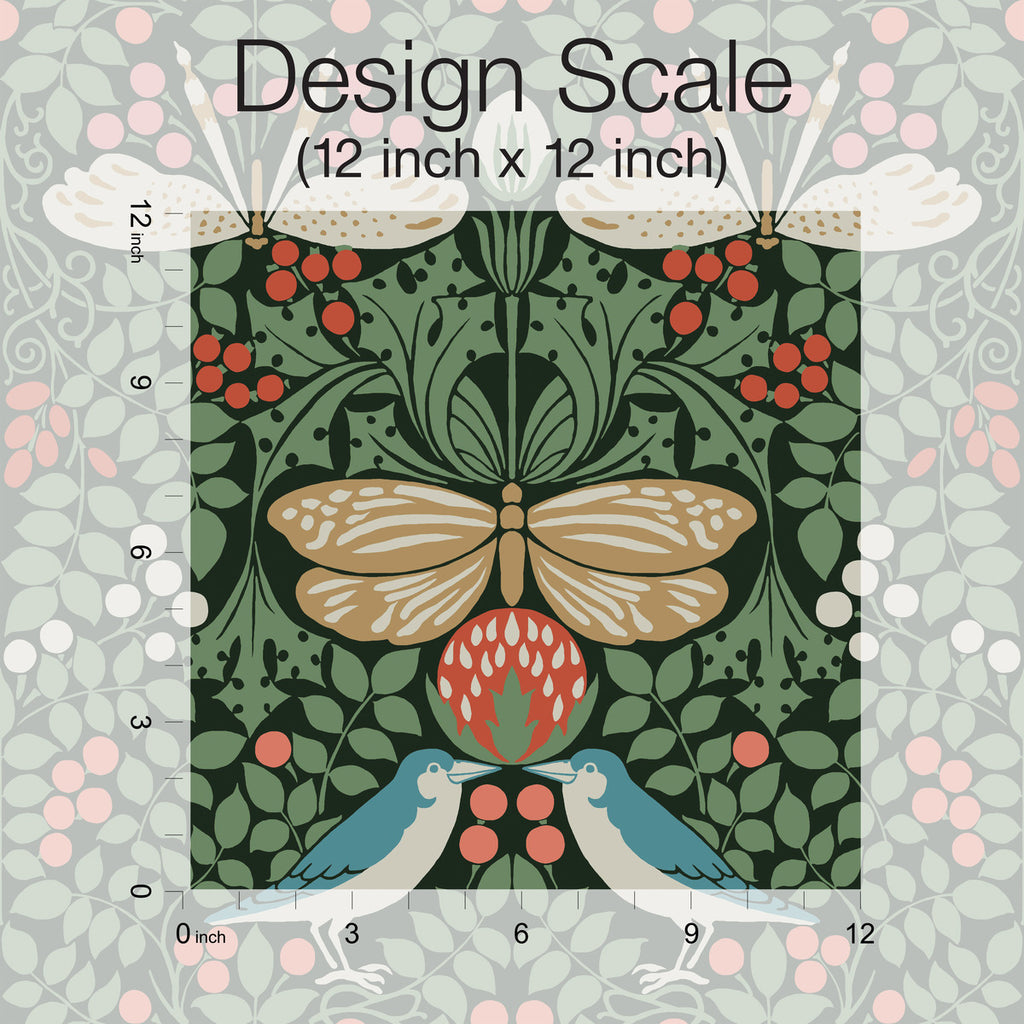Influenced by William Morris’ principles of incorporating lush flora and fauna into his work, Butterfly Garden is a spectacular pattern created for a furnishing fabric in 1918 by architect-designer, C.F.A. Voysey.