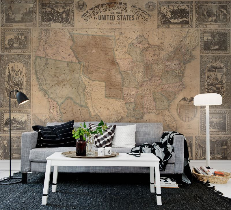 Pictorial Map of the U.S. Wallpaper | Rebel Walls