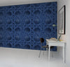 Denim Trellis Wallpaper by Rebel Walls showcases an intricate geometric trellis pattern in deep indigo hues, evoking the texture of classic denim. Its sophisticated design adds depth and character to any space, blending timeless style with modern elegance. #wallstyle #interiorwallcoverings #luxurywalls