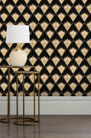 A repetitive pattern with very chic design on a black background, inspired by the luxurious lifestyle of the roaring 20’s. All Mind The Gap wallpapers are made on new generation non-woven substrate. Printed with eco-friendly inks, Mind The Gap wallpaper are easy to install on any wall type. When hanging the wallpaper, apply the ready-mix adhesive paste on the wall and hang the strips one by one by butting the edges together. The adhesive allows for a while moving the wallpaper strips, so that the wallpaper pattern continues correctly from one strip to another. All our wallpapers are tested and certified for fire rating according to the international legislation. More information and official reports regarding the fire rating are available on demand.