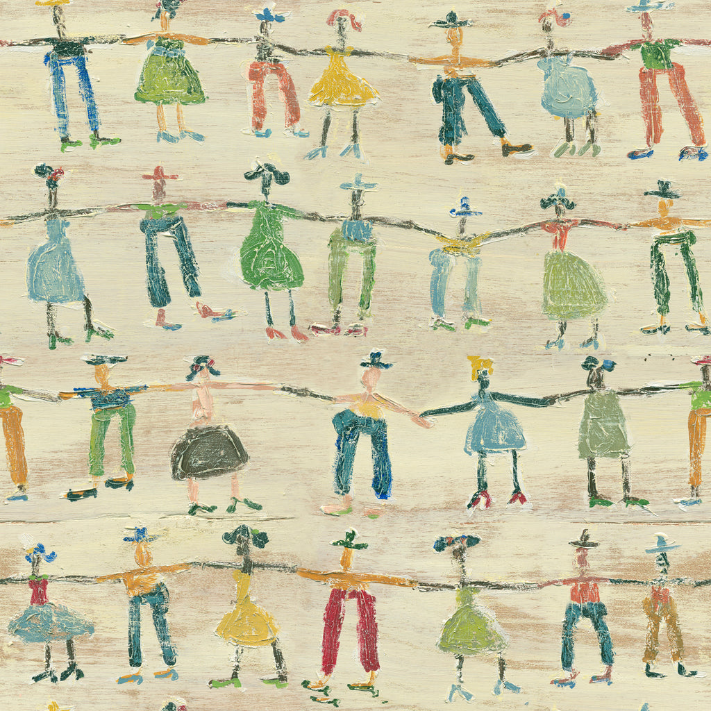 The Little People Wallpaper by SUGARBOO features whimsical, hand-drawn figures scattered playfully across a soft, neutral background. This charming design adds subtle warmth and character, perfect for elevating any space with a lighthearted touch. #homedecor #wallart #stylishwalls