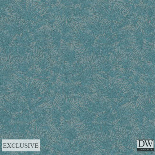 Metallic silhouettes appear atop a solid backdrop suggesting palm fronds or splayed pine needles. The glimmering Mylar brings a glamorous mystique to an otherwise organic design for a beautifully uncommon mix. Among the seven palettes is icy silver on pale grey and also gleaming copper on beige. woods, forest, trees, metallic