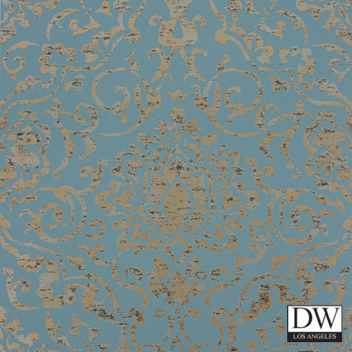 A mid-scale distressed damask with subtle metallic highlights. BELEM is the castle on the river Tagus
