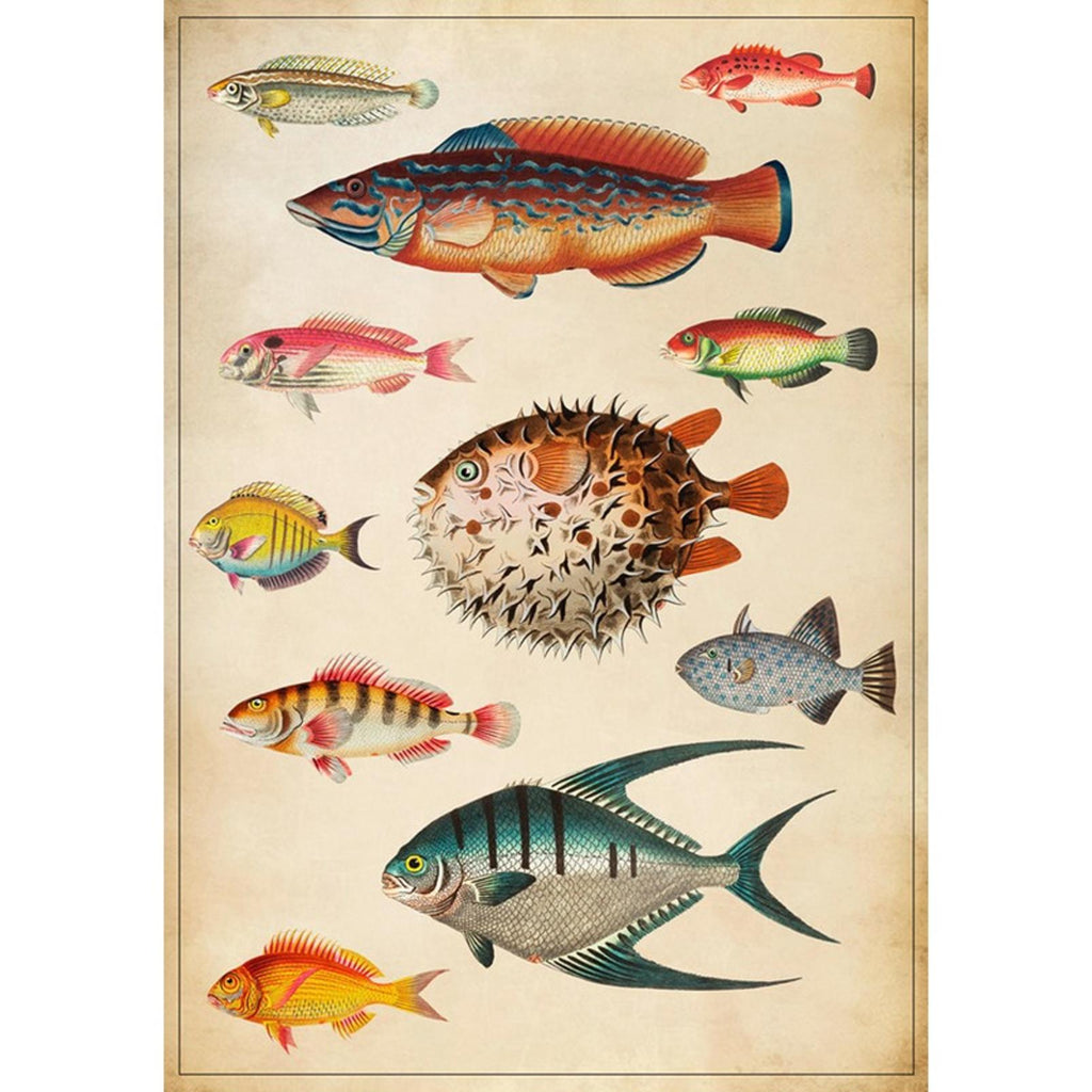 This vintage-inspired wallcovering features a collection of colorful fish illustrations, creating a unique and eye-catching design. Its classic style and detailed imagery make it suitable for adding a touch of character to various commercial spaces.