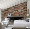 This vibrant brick wallpaper features deep oranges, blacks, and browns with a distressed appearance. If you dream of living in a loft, use this as an accent wall for an industrial look.