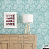 Elevate your home décor with this chic floral wallpaper. The design features an intricate dot print that pops against a turquoise blue background. A subtle woven print adds texture to the background.