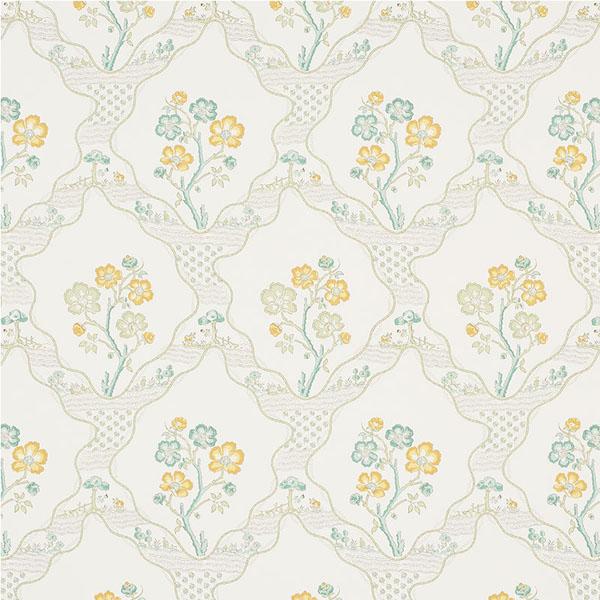 An eccentric, wavy trellis pattern, Marella is enlivened by charming botanical motifs. The wallpaper version of this unique design is surface printed for added interest.