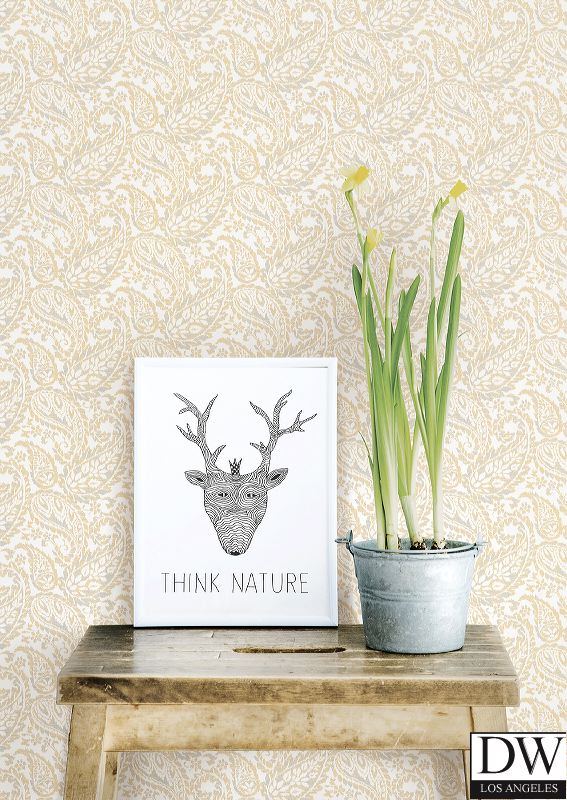 The perfect tonal paisley wallpaper for any space. This design features warm shades of pale honey and grey that are subtle yet dimensional. A romantic colorway that would look lovely on an early summer morning.
