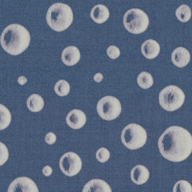 The Bouncing Bubbles Mural - Bluebell by Designer Wallcoverings features soft, overlapping bubble shapes in calming blue tones, creating a charming, playful atmosphere. Perfect for adding subtle texture and depth to any space. #interiorstyle #wallart #luxurywallcoverings