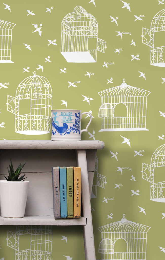 The intriguing title of this wallpaper is incorporated in the design as individual words carried in the birds' beaks.