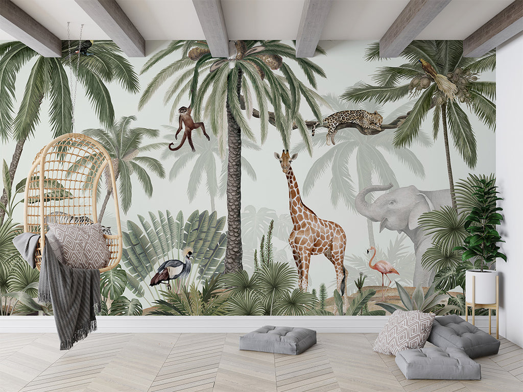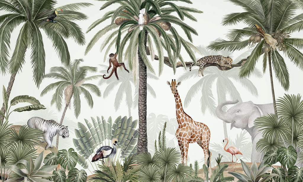 Each new design begins with a carefully considered concept—whether it’s a whimsical garden scene, a dramatic landscape, or a surreal menagerie. Once the theme and style are set, we assign the most fitting illustrator to hand-paint the design’s elements: from exotic animals captured in motion to delicate florals, vast skies, lush trees, and more. Every illustration is painted individually and then seamlessly layered into the full composition.