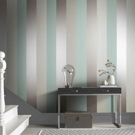 Create the perfect balance in both design and color by combing a timeless wide bar stripe with a contemporary, on trend palette. This Graham and Brown iconic design has been beautifully retouched with a refreshing mint tone and striking metallic stripe for a refined look that will add structure and order to any room, but also creating a distinctive interior statement. Quick & easy 'Paste The Wall' application (no decorating table or pre-cutting required). Non-woven wallpaper, won't shrink or expand overtime.Designer Wallcoverings and Fabrics is a leading authorized dealer of Figaro Mint Wallpaper