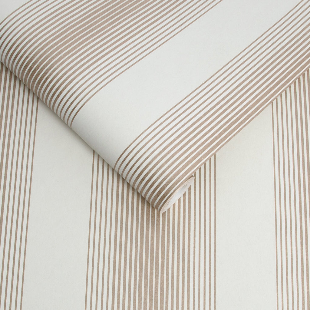 Lagom Stripe White and Rose Gold harmoniously delivers elements of Lagom living, with modern metallic highlights and lineal structures. This soft white fibrous substrate is adorned with strong rose gold metallic stripes to create an effortlessly chic wallpaper design. Hang vertically or horizontally for a chic look and co-ordinate with a plain wallpaper for a refined look.Designer Wallcoverings and Fabrics is a leading authorized dealer of Lagom Stripe White and Rose Gold Wallpaperæ æ