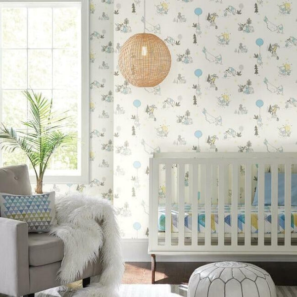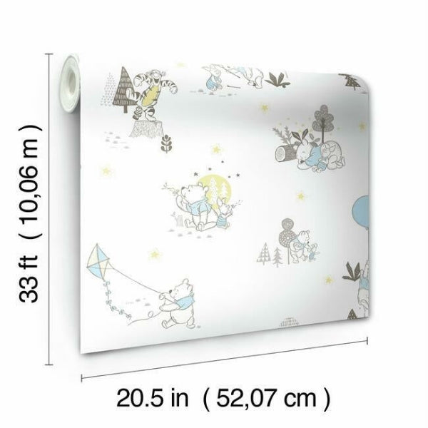 This colorful pattern is sure to add high impact to your kids space. This Disney Winnie the Pooh Playmates Wallpaper measures approximately 20.