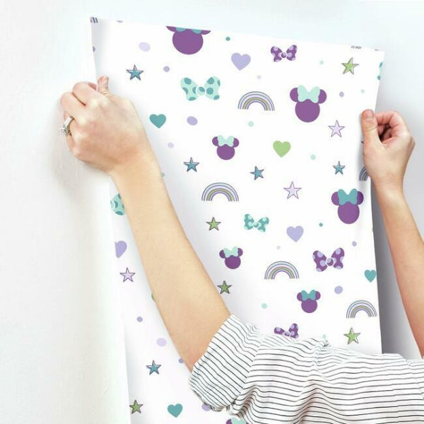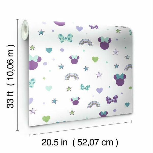 This colorful pattern is sure to add high impact to your kids space. This Disney Minnie Mouse Rainbow Wallpaper measures approximately 20.