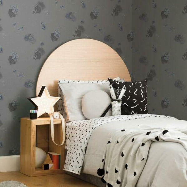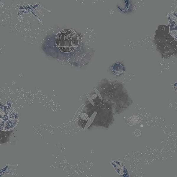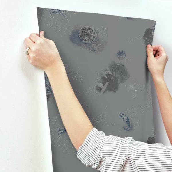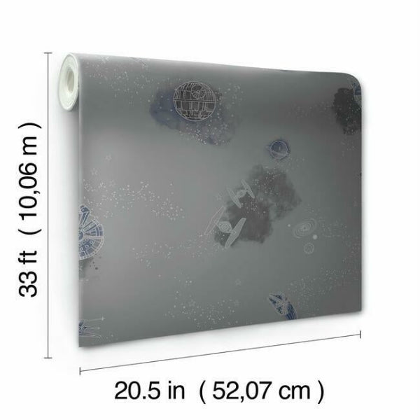 This colorful pattern is sure to add high impact to your kids space. This Star Wars: Good Night Galaxy Wallpaper measures approximately 20.