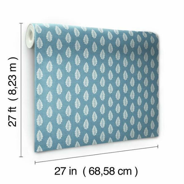 The gentle leaves of pattern Leaf Pendant arch in stripe formation on a ground of linen woven texture. This Leaf Pendant Wallpaper measures approximately 27 inches wide by 27 feet long, covering About 60.