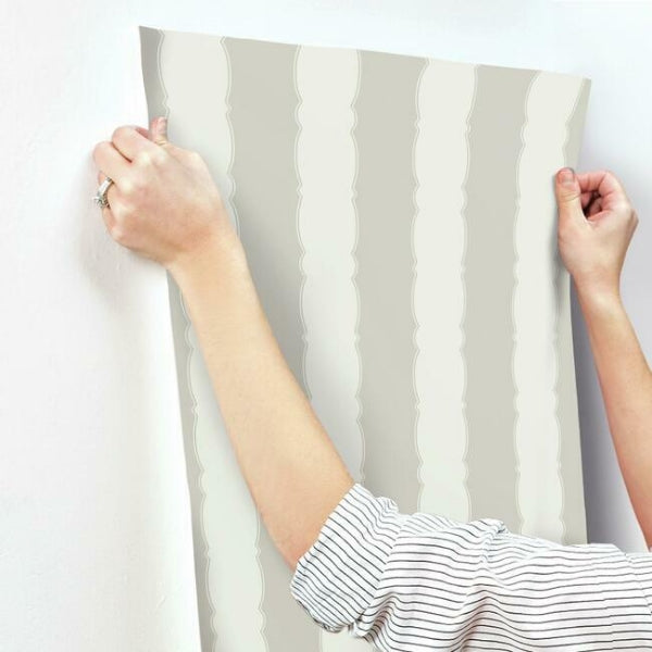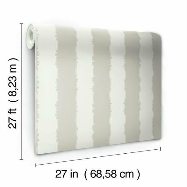 The elegant curves of a wooden spindle inspire the curvaceous silhouette of pattern Scallop Stripe. This Scalloped Stripe Wallpaper measures approximately 27 inches wide by 27 feet long, covering About 60.
