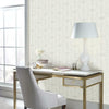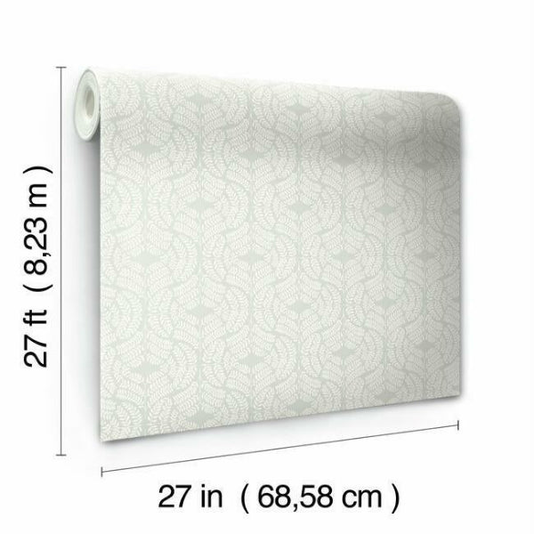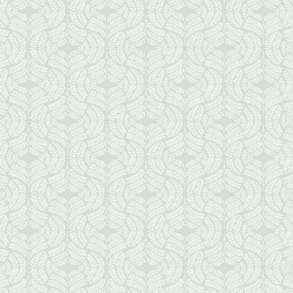 Elegant, artisanal detailing adds a classic touch to contemporary style for heritage modern interiors..Gracefully curved, leafy sprigs form large square designs in raised ink on contrasting solid color. This is Fern Tile Wallpaper.