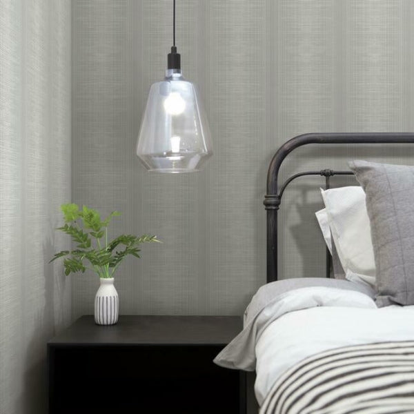 Suzi Gray Silk Weave Stripe by Jeffrey Stevens features subtle, elegant stripes with a textured silk weave effect, perfect for adding refined dimension to any space. #luxurywallcoverings #interiordetails #designerwalls