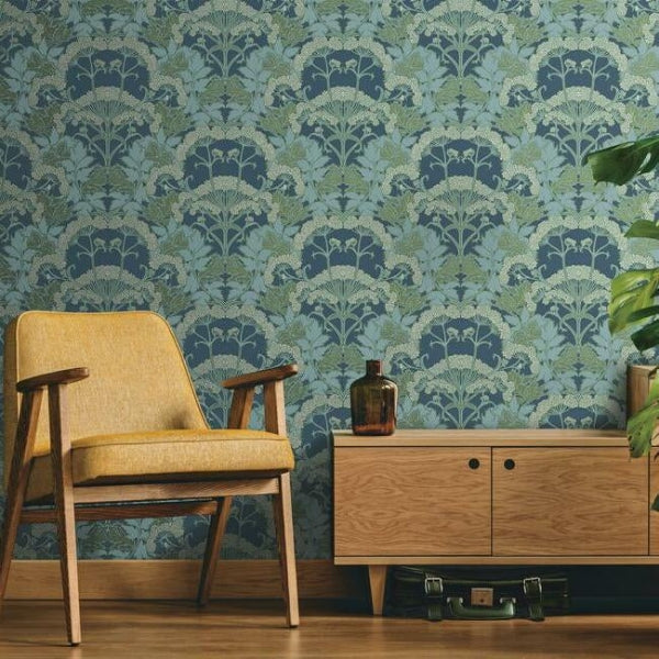 Art Deco, Beige, Blue, Botanical, Dark, Dresden, Floral, Green, Jade, Jeffrey Stevens, Light, Maroon, Mid-Century, Muted, Navy, NV5558, Petrol, Red, Slate, Steel, Strippable, Transitional, United States, Unpasted, Wallcovering, Wallpaper, Washable, Yarrow Nouveau,KEYWORDS: