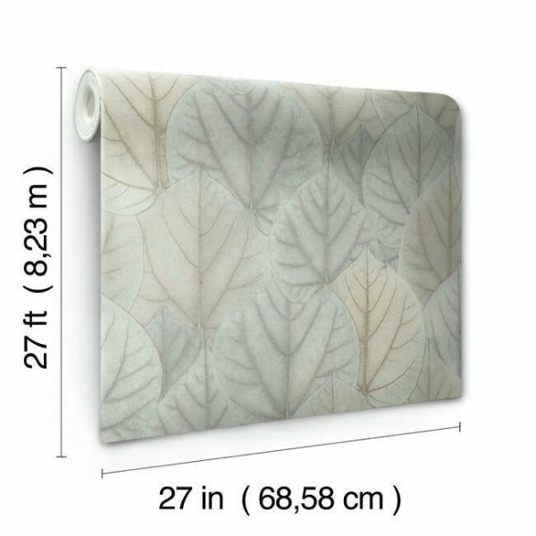 A forest of leaves, aglow with veined metallic, creates a patchwork composition of natural color in pattern Leaf Concerto. This Leaf Concerto Wallpaper measures approximately 27 inches wide by 27 feet long, covering About 60.