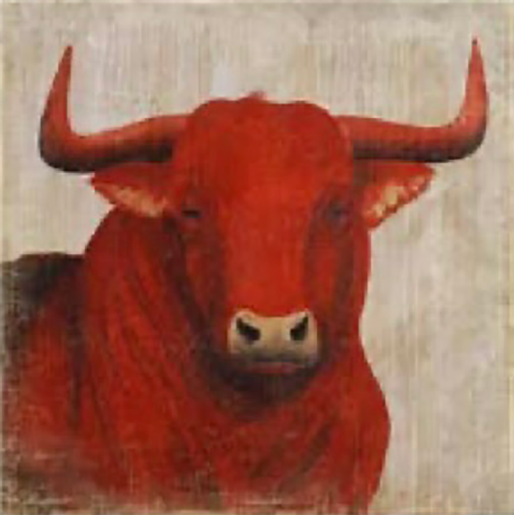 Experience color and passion with the "Red Bull Art Print" by Paul Montgomery. A mesmerizing addition to any space. #ArtInInteriors #PaulMontgomery #BullArtPrint