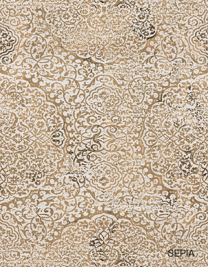 Antique Damask 3 Sepia On Silver Sisal Wallpaper | Paul Montgomery
