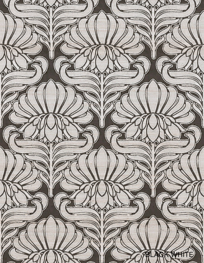 Damask 1 is an updated take on an Art Nouveau design of Fritillaria flowers becomes a fresh and modern casual Damask pattern. A soft silver shimmer adds an elegant effect. Sold by the panel in standard lengths. Pattern is 35" wide after trim by installer.