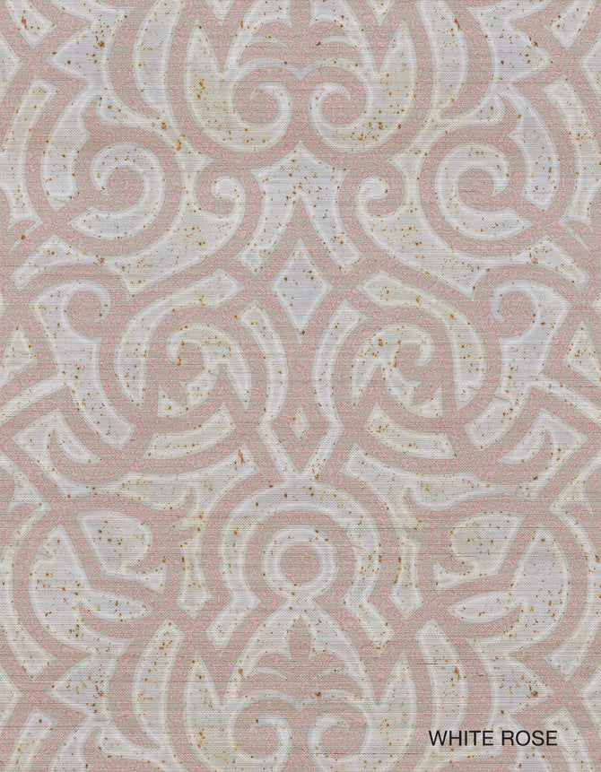Damask 4 White Rose On Silver Sisal Wallpaper | Paul Montgomery