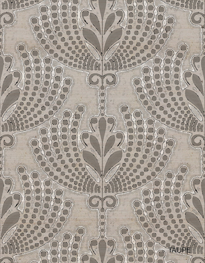 Damask 5 Taupe On Silver Sisal Wallpaper | Paul Montgomery
