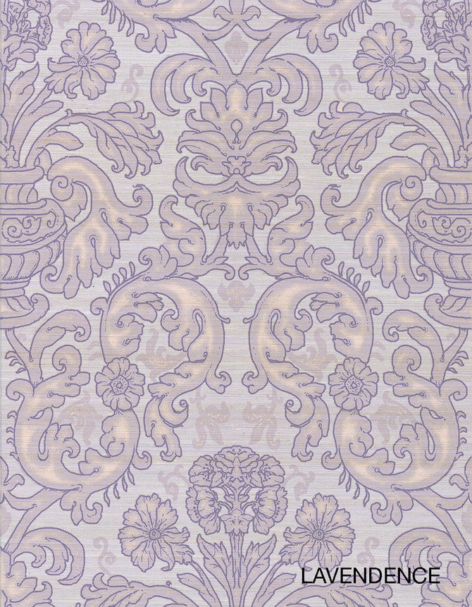 Fiora Damask Lavendar Purple On Sisal Wallpaper | Paul Montgomery