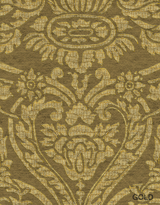 Grand Damask Gold On Silver Paperweave Wallpaper | Paul Montgomery