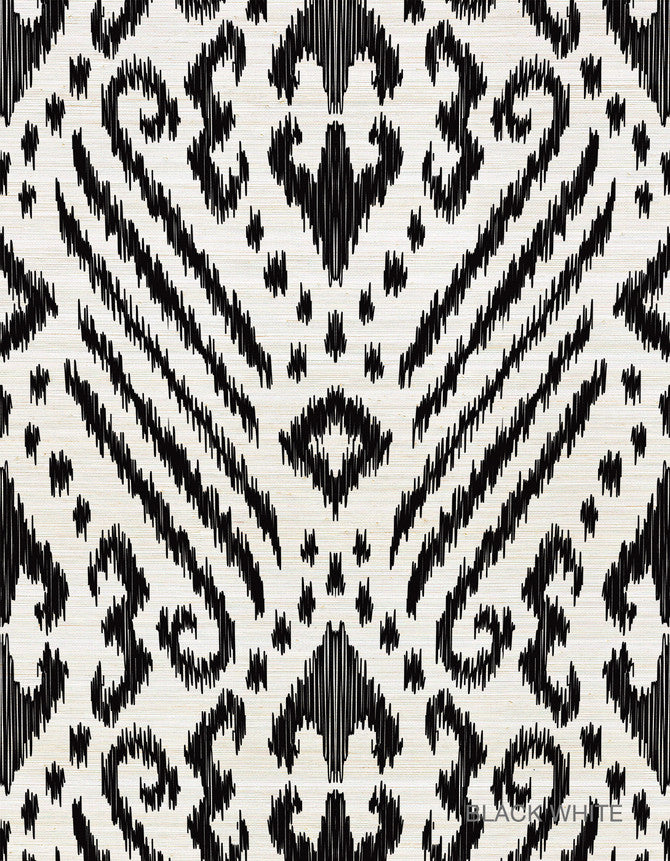Elegant black and white Ikat pattern with a timeless geometric design by Paul Montgomery. Perfect for adding sophisticated contrast to any space. #InteriorStyle #WallDesigns #LuxuryWallcoverings