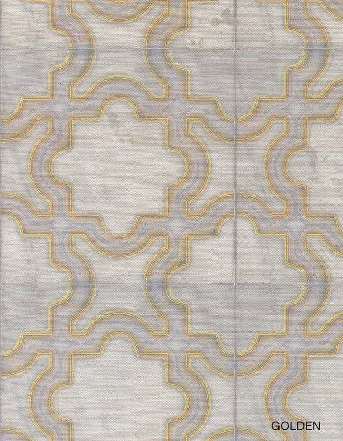 Kari Trellis Lattice Golden On Silver Sisal Wallpaper | Paul Montgomery