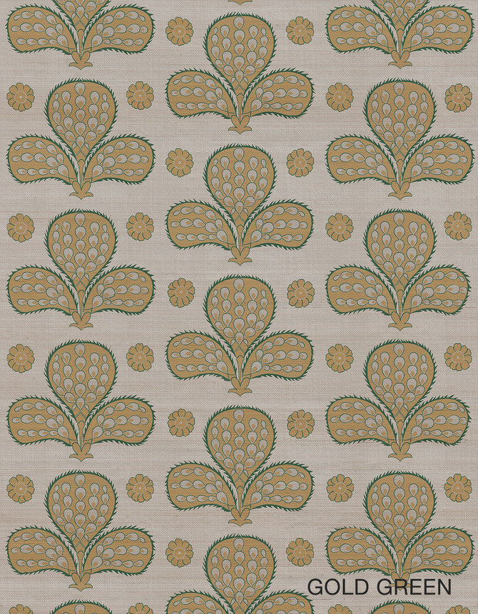 Peacock Tail Ottoman 6 Gold Green Wallpaper | Paul Montgomery