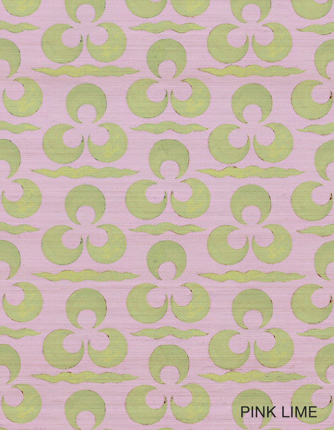 Crescent Ottoman 7 Pink Lime Wallpaper by Paul Montgomery features a chic fusion of soft pink and vibrant lime crescents forming an elegant, modern pattern perfect for a stylish, contemporary space. #luxurywallcoverings #moderninteriors #designerwallpaper