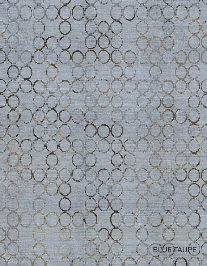 Ovals Blue Taupe On Silver Sisal Wallpaper | Paul Montgomery