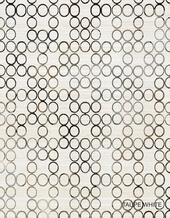 Ovals Taupe White On Silver Sisal Wallpaper | Paul Montgomery